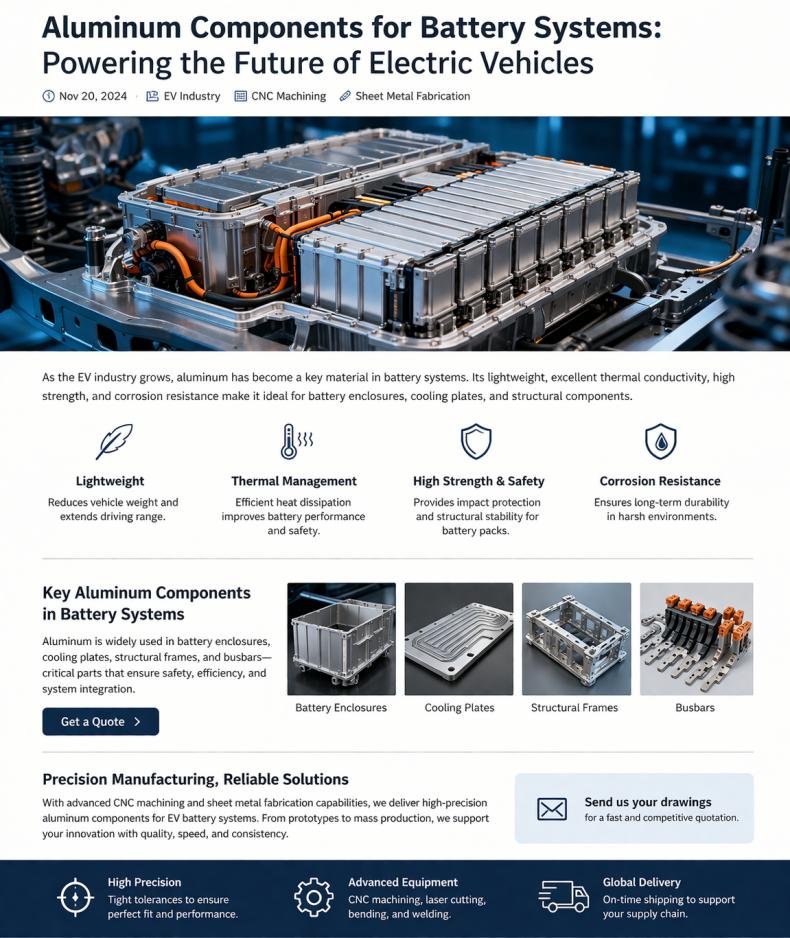 Aluminum components are becoming the backbone of modern battery systems in electric vehicles. With advantages in weight reduction, thermal management, safety, and sustainability, aluminum will continue to play a central role in the future of mobility.